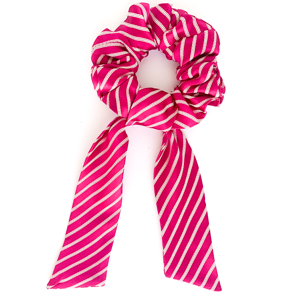At the source of youth and color lies the blushed bubbles silk scrunchie. The blushed bubbles silk scrunchie is versatile and extremely lightweight. It is ultra breathable and is the perfect addition to any coordinating outfit. The beautiful off-white stripes horizontally engage and enhance the elements of the blushed bubbles silk scrunchie. Mesmerize and enchant with this beautiful, bright accessory that will be an eye-catcher to any.  As a signature part of the silk scrunchies collection, the blushed bubbles silk scrunchie includes a detachable bow that can be tied on to any accessory or used as a neckerchief, bracelet, or anklet.